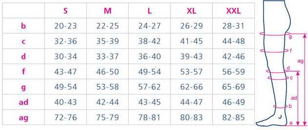 Создает дозированную компресиию нижней конечности. Плотный по структуре, благодаря чему позволяет скрыть капиллярные сеточки и расширенные вены. Фиксируется с помощью эластичного пояса.