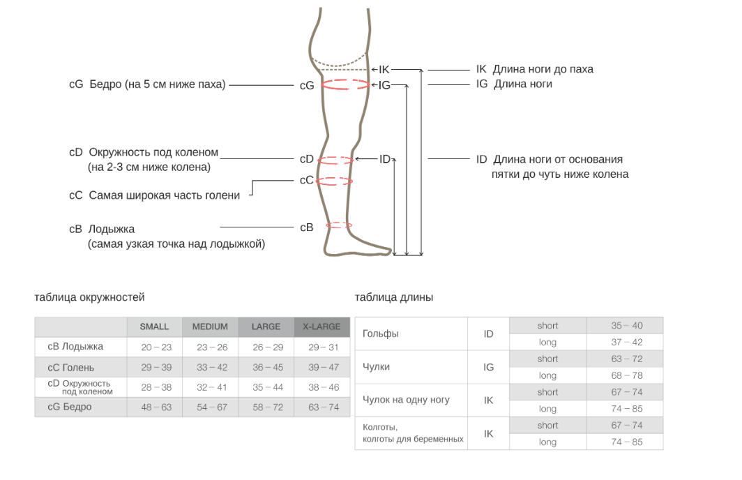 Возможность изготовления чулок по индивидуальным меркам.