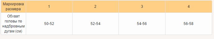 Таблица размеров: