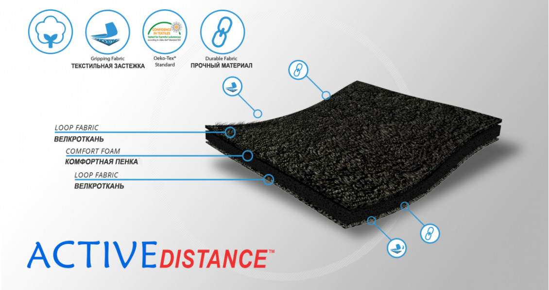 Материал ActiveDistance из которого изготовлен ортез достаточно мягкий, что улучшает комфорт использования ремня и делает его полностью безопасным для ребенка уже с 1 дня его жизни. Двусторонняя функция самоприлипания обеспечивает широкий диапазон регулировки ортеза, благодаря чему он бил создан в одном универсальном размере.