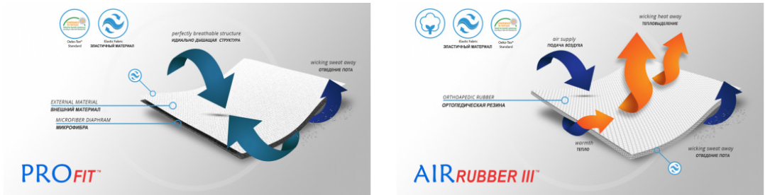 Воздухопроницаемый и дышащий материал ProFit ™ добавляет прочность всей конструкции. ProFit ™ это двухслойная ткань, которая идеально облегает тело пациента, тянется во всех направлениях. В конструкции использованы восемь ремней-стяжек. Регулировка уровня компрессии происходит отдельно в верхней и нижней части корсета, что позволяет точно подогнать изделие под пользователя. Окружность бандажа легко регулируется с помощью застежки-липучки в передней части бандажа.