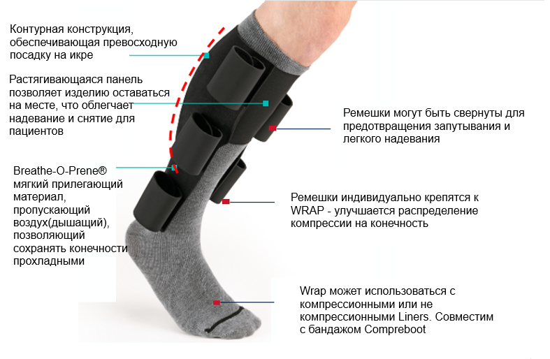 Комбинируется с бандажом для бедра, колена и стопы. Compreflex® для достижения полной компрессии ноги