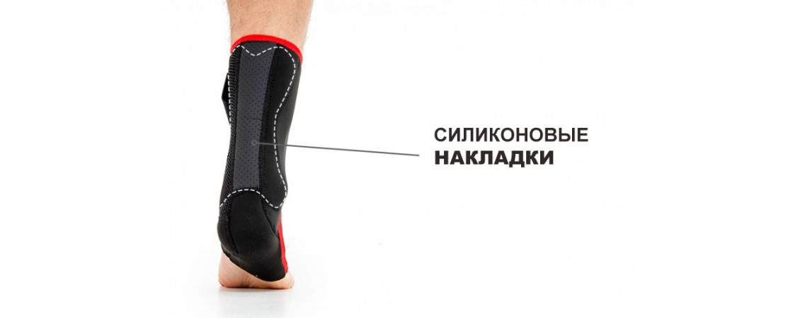 Ортез противодействует раздражениям благодаря силиконовому вкладышу, расположенному выше пятки. Крылья вкладыша захватывают область перехода сухожилий в мышцы, облегчая движение ступни