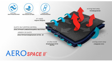 AeroSpace II™ это инновационный материал нового поколения. Представляет собой пространный и эластичный 3D материал, состоящий из двух внешних слоев и плетенной внутренней части создающей нужную толщину и разгружающие свойства. Используется полиэстр обеспечивающий механическую прочность и спандекс обеспечивающий эластичность. Имеет внешний полиамидный слой с функцией самоклеения, что позволяет легко регулировать изделия из этого материала. Это очень легкий, высоко эластичный и ажурный материал, благодаря чему хорошо отводит пот и способствует вентиляции. Изделия из этого материала нейтральны к суставу, не греют и не охлаждают его, но поддерживают нужную компрессию и прилегание и уменьшают дрожь мышц во время физических нагрузок. Его толщина и 3D структура защищают от воздействия установленных на изделии ортопедических шин, фишбин или других жестких элементов и гарантируют мягкость на ощупь