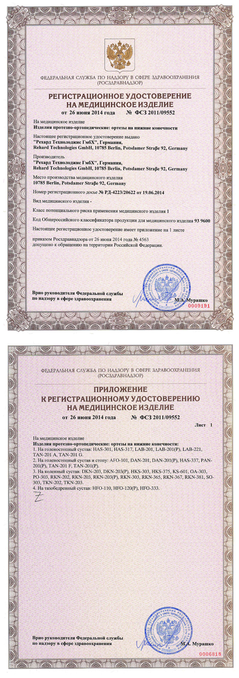 Ортез на коленный сустав Orlett RKN–203 2G, разъемный с полицентрическими шарнирами.