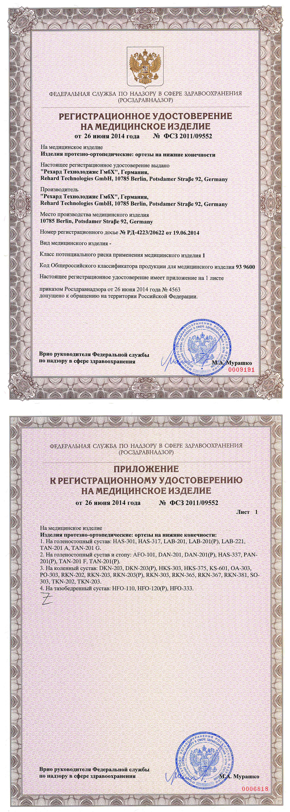 Сертификаты на Orlett RKN–203
