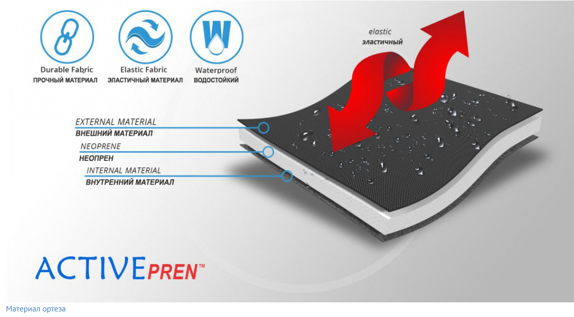 Ортез колена LigaCare изготовлен из материала ActivePren™.Материал водостойкий, с хорошей воздухопроницаемостью