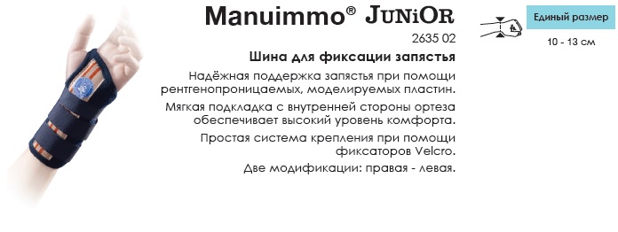 Купить mANUIMMO® JUNIOR Шина для фиксации запястья детская с доставкой в Краснодаре в интернет салоне Med V Rus по цене 3 250 руб.. Скидки до 25%. Доставка и самовывоз из пункта выдачи товаров. Оплата наличными или картой. Телефон для заказов +7 (495) 003-4512.