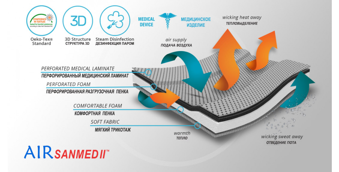 Удобство в носке. Благодаря инновационному материалу AirSanmed кожа под ортезом не потеет и «дышит».