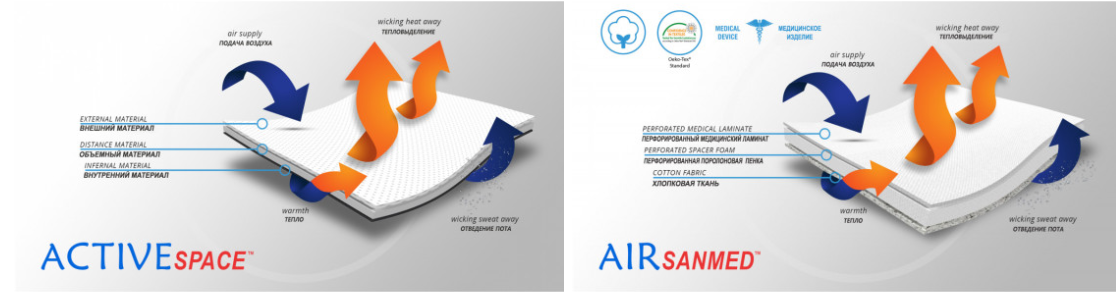 Ортез изготовлен из материала ActiveSpace и AirSanmed