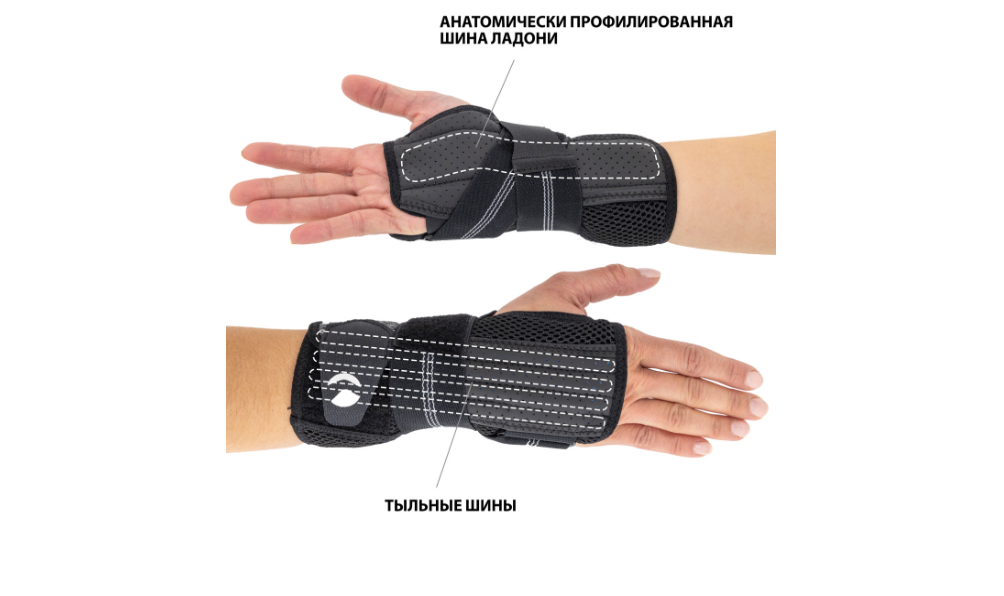 - Стабилизирует лучезапястный сустав, разгружает прикрепления мышц предплечья и кисти.